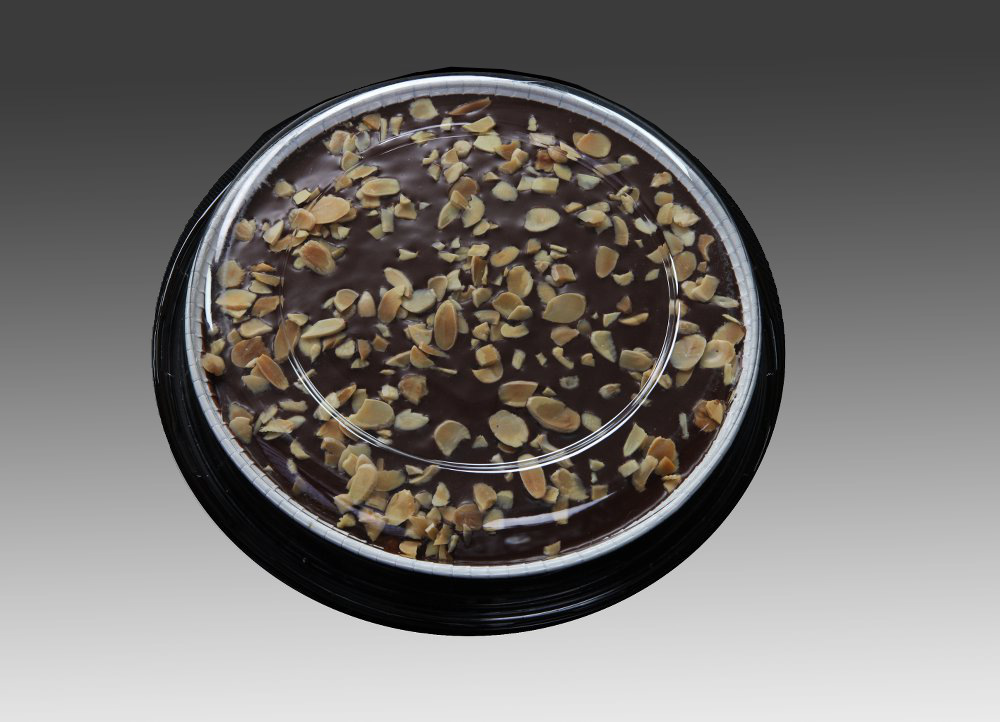 Rührkuchen mit Milchcreme, dekoriert mit feinen Mandelstückchen